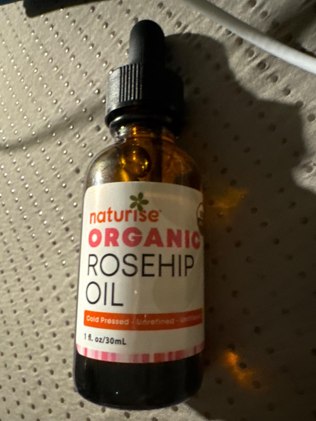 I love the feel of this rosehip oil. It is very lightweight but goes on smoothly. A couple of drops are adequate for my entire face. It spreads easily and is a great addition to my skincare routine. I typically use this as my step 3 in my routine but this is perfect as my one and only product after washing. After cleansing this leaves my skin hydrated with a light soft glow. I have not had any adverse reactions to the product. A good value for organic cold-pressed oil. Use directly on the skin or mix with your favorite moisturizer